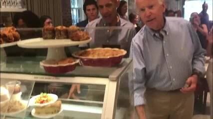 El ex presidente de Estados Unidos, Barack Obama, y el ex vicepresidente del mismo país, Joe Biden, quien ejerció el cargo durante los dos mandatos del ex mandatario afroamericano, visitaron Dog Tag Bakery, una panadería en la ciudad de Washington.