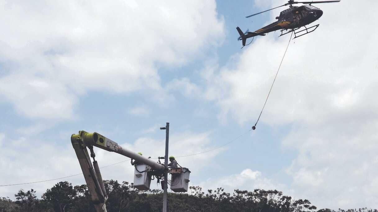 “Son dos personas en helicóptero. Hicieron un reconocimiento inicial de la situación y verificaron que cada crew de trabajo estén posteados donde se supone que estén. Tomaron el primer conductor desde el punto A y lo pasaron hasta llegar al punto C. Los grupos [en los postes] comenzaron a tesar el alambre para llevarlo al lugar [correspondiente]”, detalló el ejecutivo.