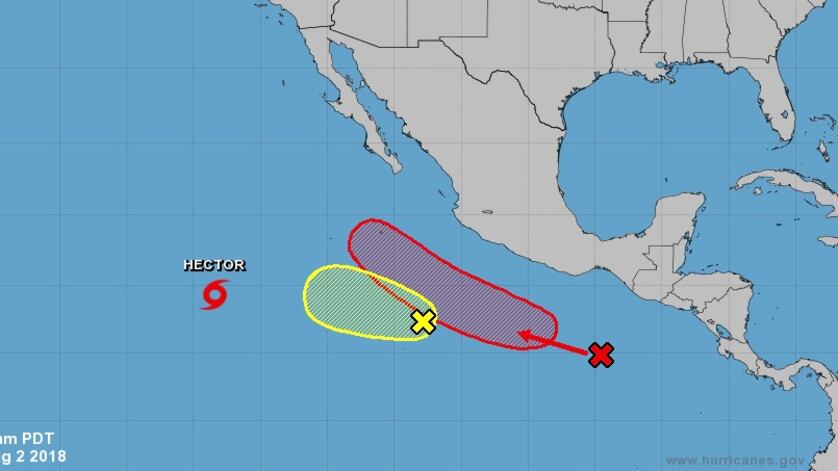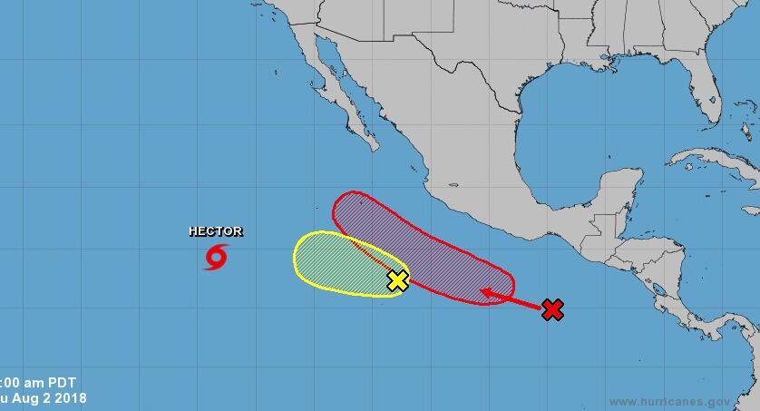 Héctor tenía vientos máximos sostenidos de 110 kph (70 mph) la mañana del jueves. Su vórtice estaba a unos 1.710 kilómetros (1.065 millas) al suroeste del extremo sur de la península mexicana de Baja California y se desplazaba en dirección oeste a 19 kilómetros por hora (12 millas por hora).