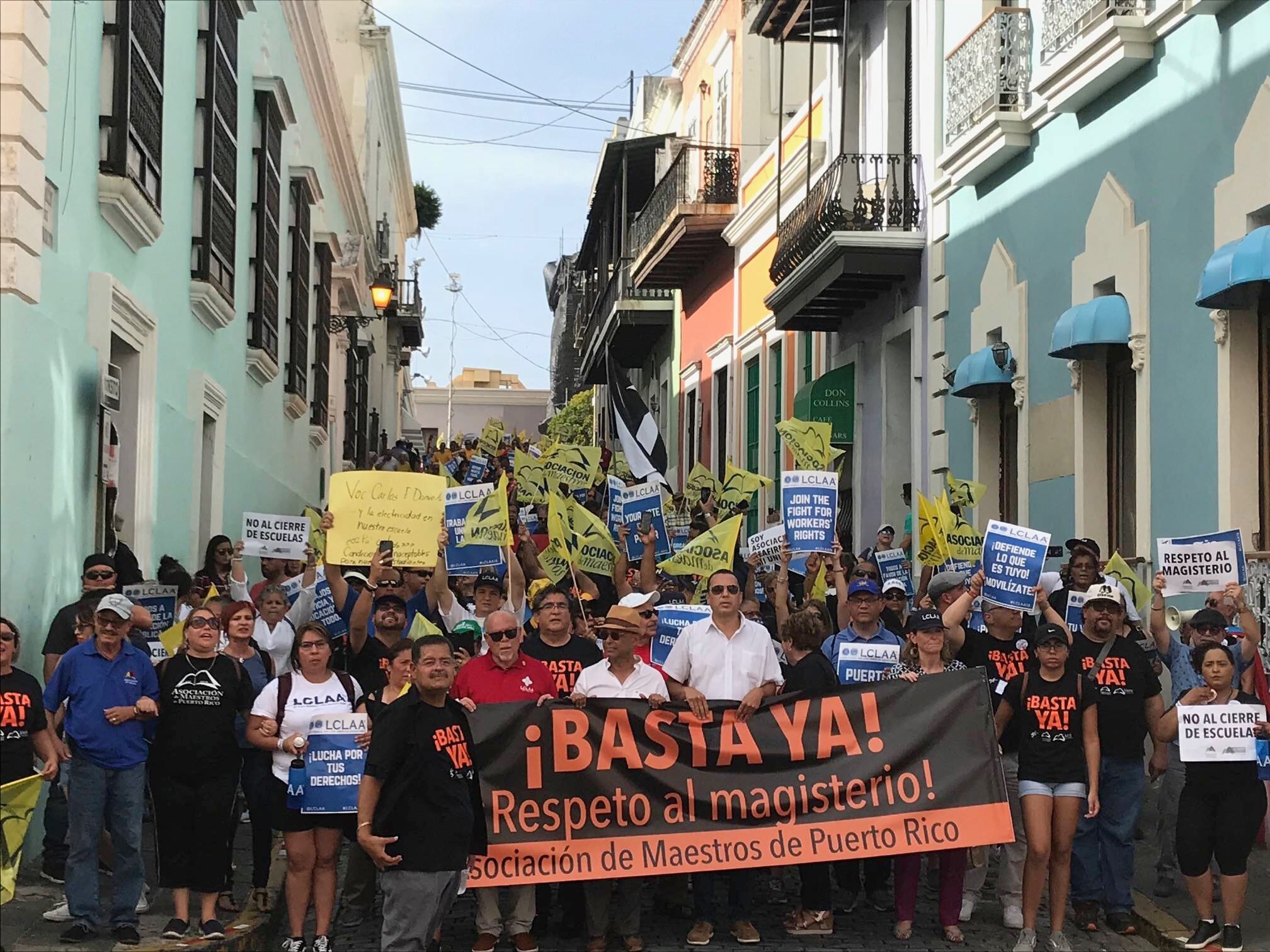 “Viendo la situación que estamos viviendo a un año de María, ellos se han identificado con las peticiones y los reclamos que estamos haciendo en Educación y nos invitaron a unirnos a esta marcha”, sostuvo Díaz. La protesta surge en momentos en que unos 2,700 maestros esperan aún por ser nombrados y asignados a alguna escuela, esperanzados de poder continuar laborando, a poco más de dos días de que inicie el nuevo año escolar. De acuerdo a la presidenta de la Asociación, que si no se completan los nombramientos dejarán sin al menos una clase al día a unos 300,000 estudiantes.
