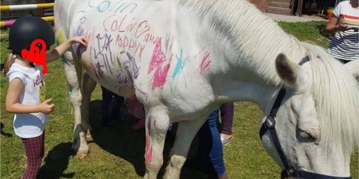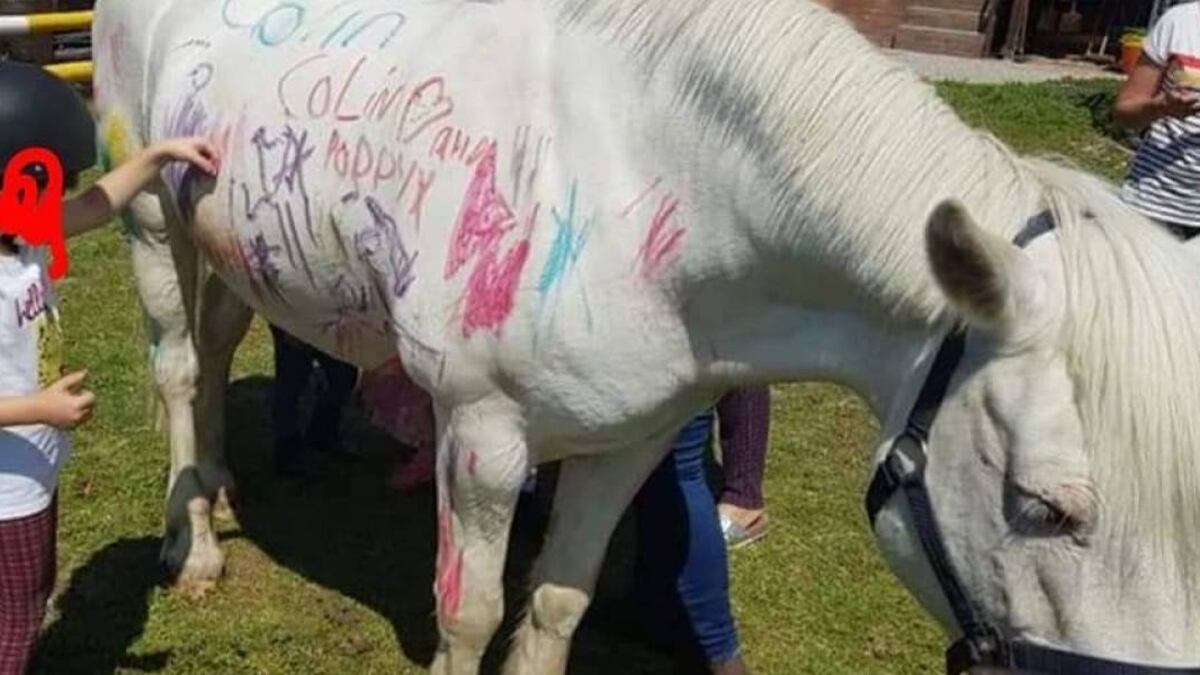 En Brasil se abrió un fuerte debate por una actividad de un centro de vacaciones de invierno, que permitía a los niños, ocupar a un caballo blanco como lienzo y dejarlo completamente pintado. ¿Explotación animal?
