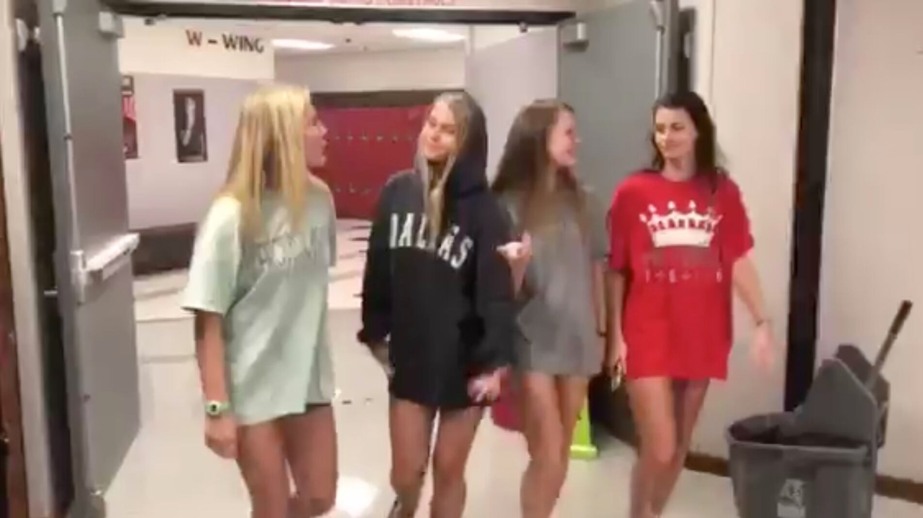 En las imágenes se ve a un grupo de mujeres con shorts de caminando por los pasillos de la establecimiento con la canción “Bad Girls”, de MIA, hasta que se topan con quien parece ser una profesora y las envía a una sala con el nombre “violadores del código de vestimenta”.