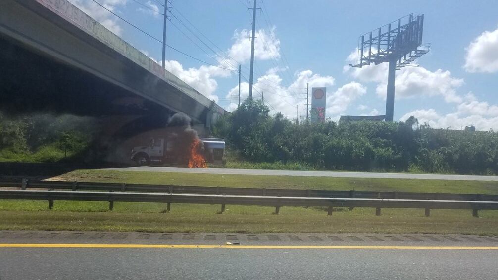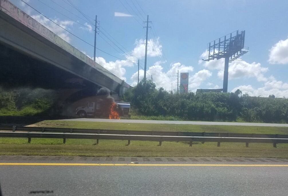 Un camión que transportaba gasolina se incendió a eso de las 2:49 de la tarde en el expreso 22 en el km.82.1 de Arecibo hacia Hatillo.
