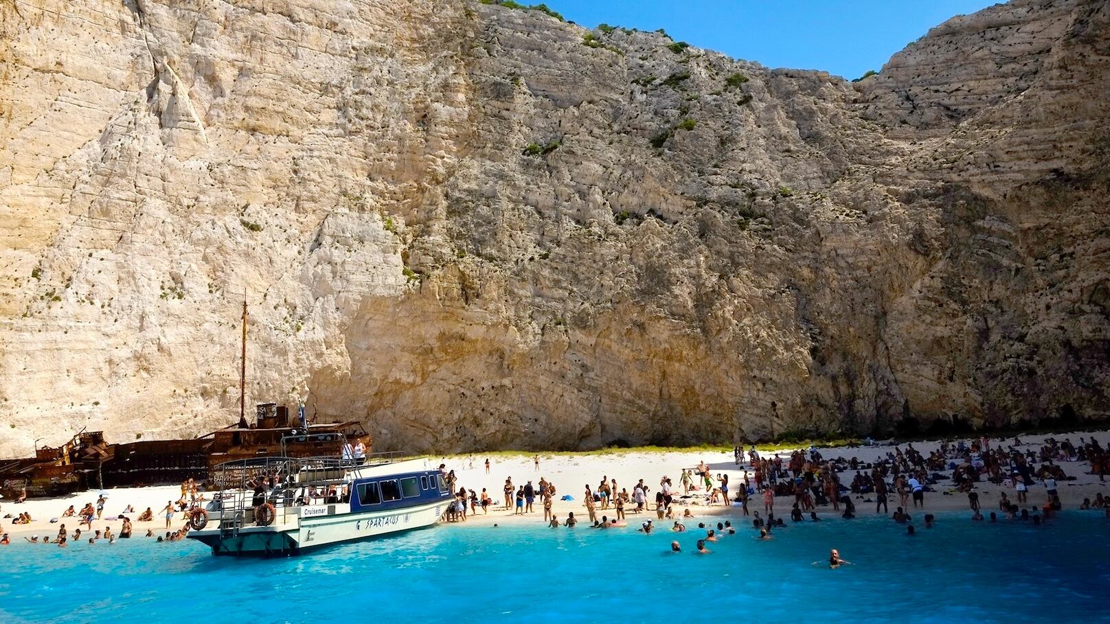 La prensa local y testigos informaron que al principio una roca enorme cayó del acantilado al mar en la playa Navagio _o playa “Naufragio”_, en la costa noroccidental de la isla, lo que creó una ola tan grande que volcó varias embarcaciones pequeñas.