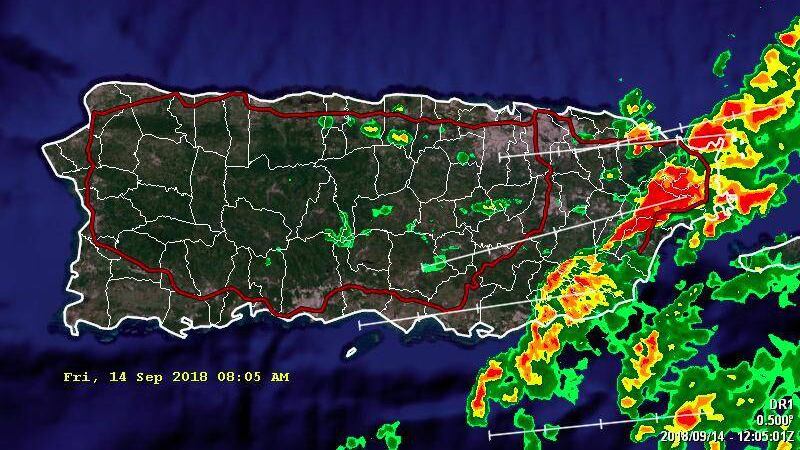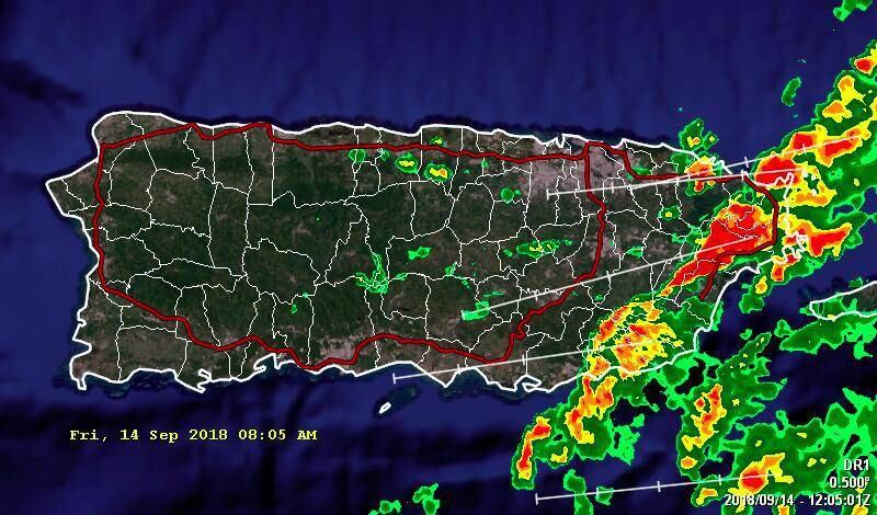 A las 8:01 de la mañana aguaceros y ráfagas fuertes, así como tormentas eléctricas aisladas se movían rápidamente sobre la zona este de Puerto Rico que se agruparon sobre Las Piedras moviéndose al oeste a 30 millas por hora (mph).