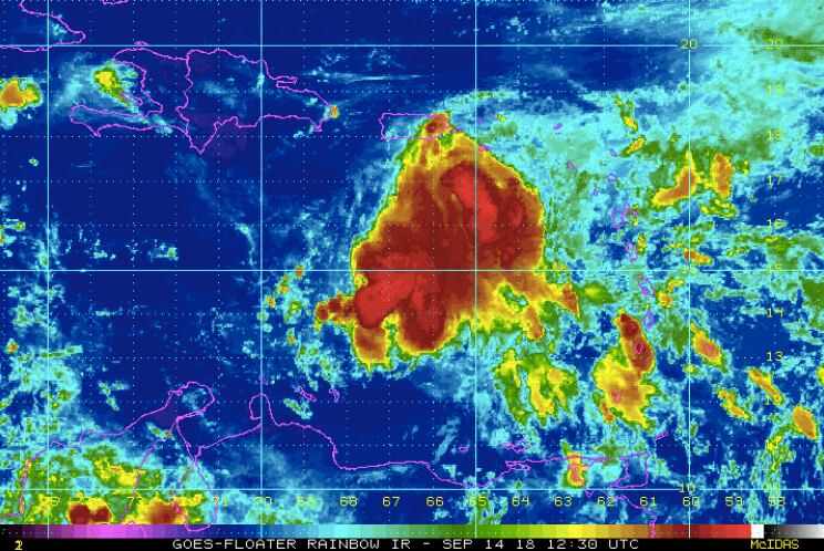 Mientras tanto, a las 11:00 de la mañana el centro del sistema estaba ubicado cerca de la latitud 14.9 norte, longitud 67.3 oeste con un movimiento hacia el oeste a cerca de 16 millas por hora (mph) (26 km / h). Se espera un movimiento general con alguna disminución en la velocidad los próximos días.