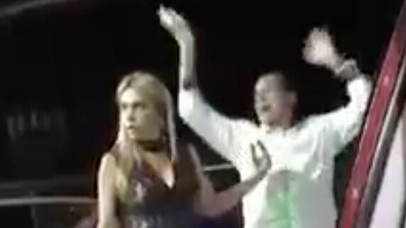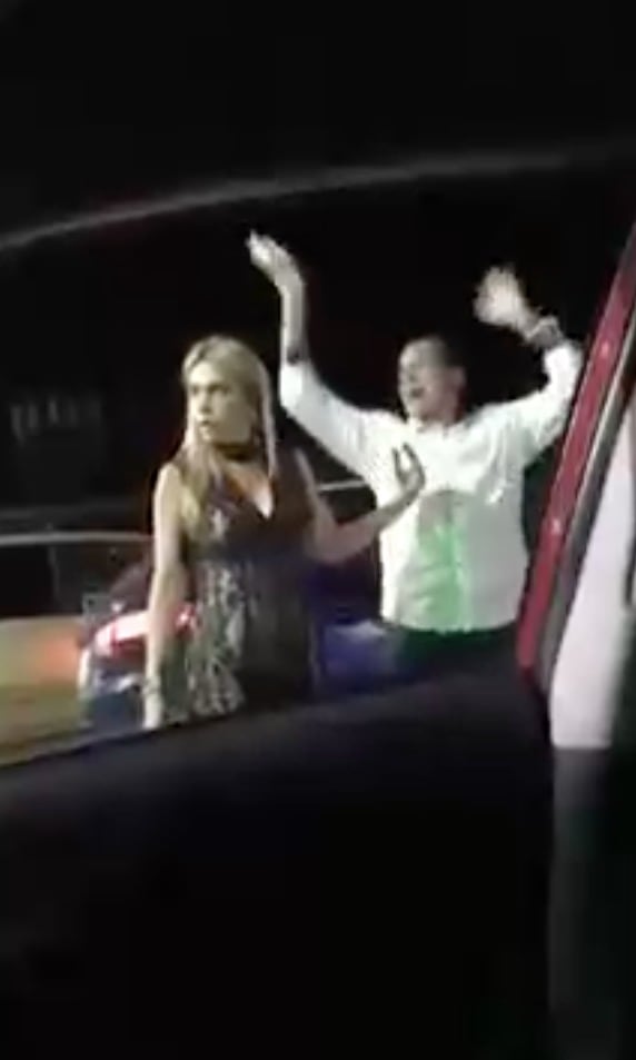 Luego de usar las palabrotas, Navarro es asistido por una mujer que lo retira del lugar.