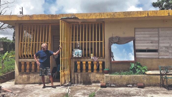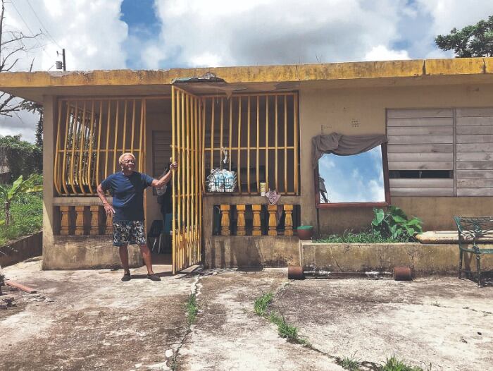 Y sí, la puerta principal de la casa de don Fermín está rota. Uno de los tres cuartos del hogar ya no tiene ventanas y, ante las deplorables condiciones de la infraestructura residencial, porciones de las paredes y la torta del techo caen por filtración y de sorpresa. Lo que en un momento fue la casa de sus padres y donde ha vivido por los pasados 31 años, hoy se ha convertido en una amenaza para el bienestar de don Fermín.