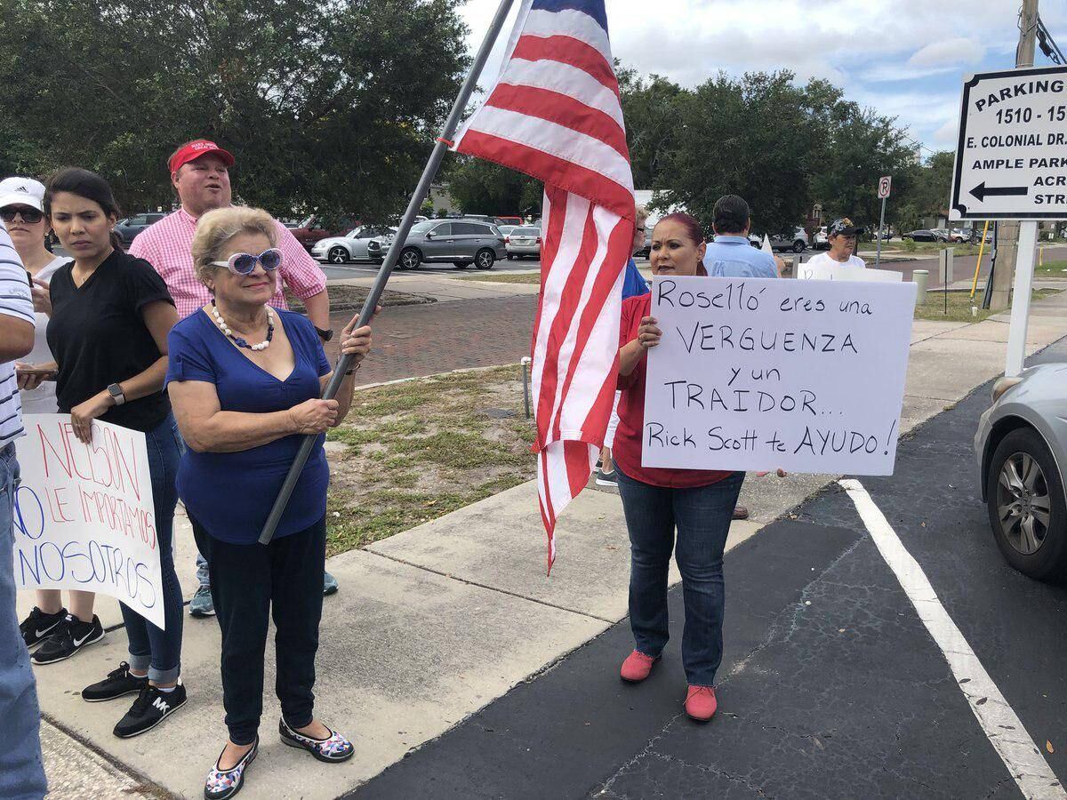 Miriam Ramírez de Ferrer, quien milita en el Partido Republicano, llevó a cabo una protesta este lunes en Orlando, Florida, donde el gobernador Ricardo Rosselló Nevares acudió en apoyo al partido demócrata, y mostró su apoyo actual senador demócrata Bill Nelson por lo que lo llamó “traidor”.