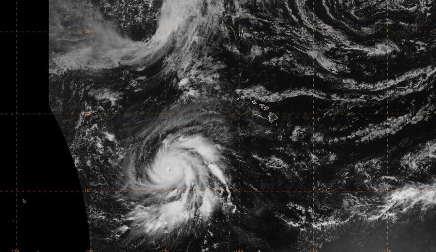 Los vientos con fuerza de huracán se extienden 50 millas desde el centro, mientras que los vientos con fuerza de tormenta tropical se extienden hacia afuera hasta 185 millas. Se pronostica que el huracán permanecerá lejos de las principales islas hawaianas.