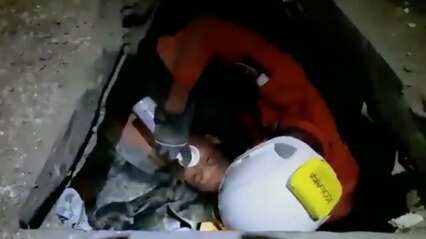 Un hombre de 38 años fue sacado de un edificio financiero en Palu, Central Sulawesi, el lunes (1 de octubre), después de que el equipo de búsqueda y rescate trabajó durante tres horas para sacarlo. Palu, una de las ciudades más afectadas por el terremoto, vio cómo se tragaban 1.700 casas en un vecindario, y se cree que cientos fueron enterradas, dijo la agencia nacional de desastres. El video obtenido por Reuters mostró a los rescatistas de la Agencia Nacional de Búsqueda y Rescate, o Basarnas Humanos, extrayendo a un hombre de 38 años que estaba atrapado en un edificio financiero en el área. El número de muertes confirmadas era de 844 el martes, la mayoría de ellas en Palu, la principal ciudad en la zona del desastre, donde los rescatistas estaban buscando víctimas en las ruinas. Video: Reuters.