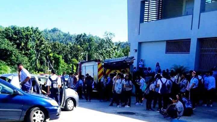 Según indicaron, los estudiantes y maestros se encuentran en las afueras de la escuela en Toa Alta ya que les indicaron que tenían que esperar dos horas para que llegara el personal de Bomberos a la zona.
