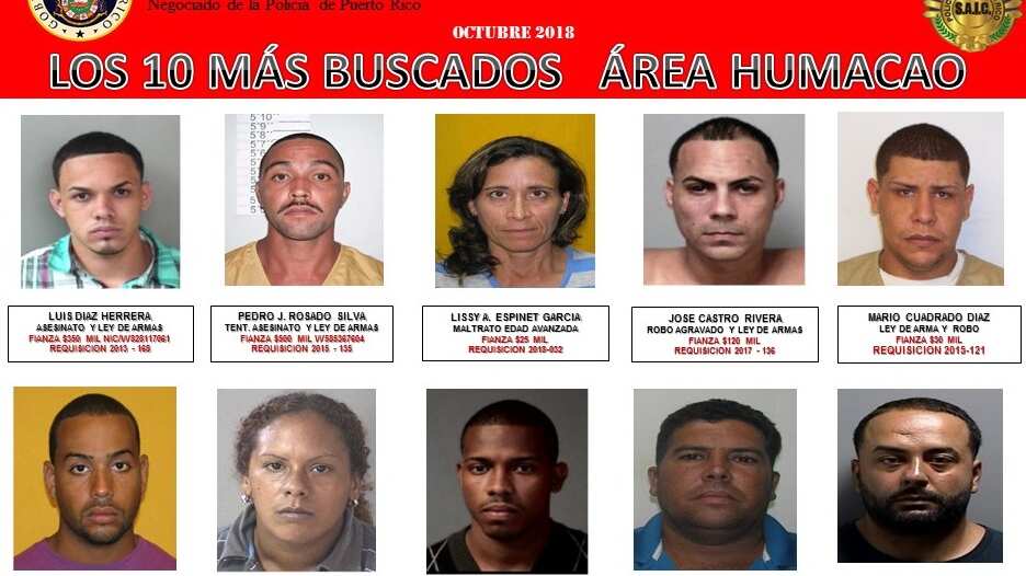 El director de la División de Arrestos Especiales y Allanamiento del Negociado de la Policía de Puerto Rico del área de Humacao, sargento Roberto García dio a conocer el jueves la lista de los 10 más buscados de esa área policiaca.