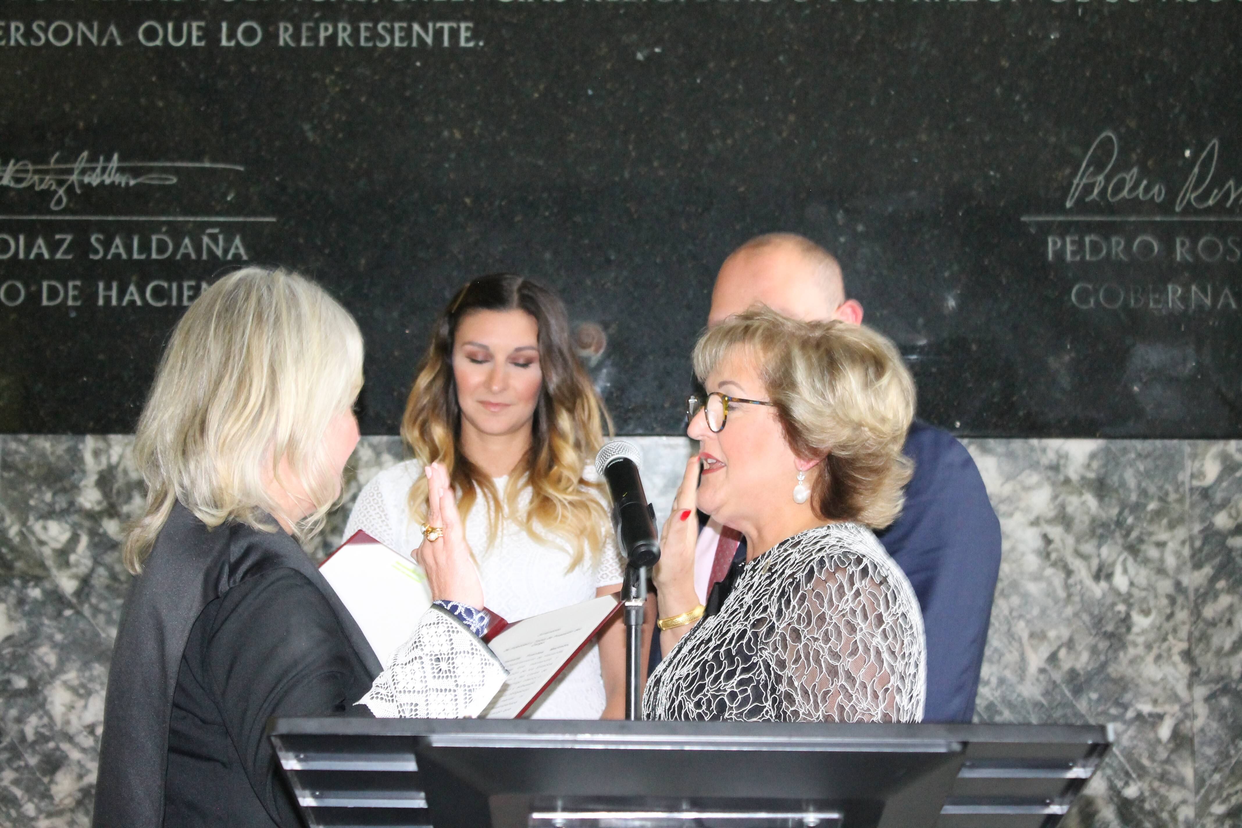 La juramentación de la secretaria estuvo a cargo de la jueza asociada del Tribunal Supremo de Puerto Rico Mildred Pabón Charneco. Mientras, que la invocación estuvo a cargo del Monseñor Wilfredo Peña, párroco de la Parroquia Santa Bernardita y la semblanza de la secretaria fue realizada por el CPA Rodolfo Colberg.