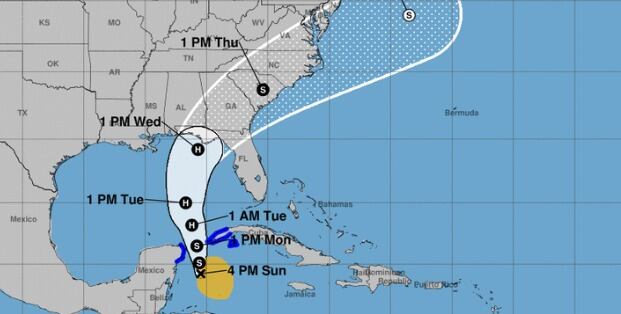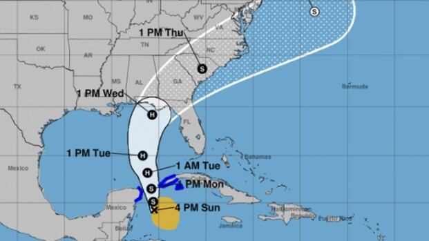 El NHC indicó en su boletín más reciente que Michael pasaría por el noroeste de Florida y podría tocar tierra con fuerza de huracán el lunes por la noche o el martes.