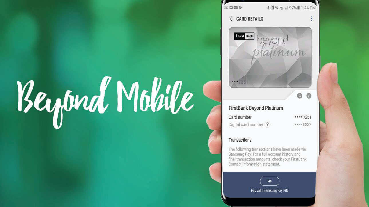 FirstBank anunció la disponibilidad para sus clientes de tarjetas de crédito Beyond, el nuevo servicio Beyond Mobile, conocido en el mercado como Billetera Digital o Digital Wallet, que les permitirá a los clientes realizar pagos en comercios, sin tener que mostrar físicamente su tarjeta.