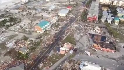 La compañía de energía eléctrica Duke Energy compartió videos aéreos y fotografías de daños en la costa de Florida después del huracán Michael el jueves (11 de octubre). Un video muestra un daño severo en una comunidad costera habitada, mientras que las fotografías muestran grietas profundas en las carreteras. Video: Reuters.