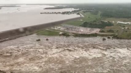 Las inundaciones en partes del centro de Texas provocaron evacuaciones debido a que más de un pie de lluvia cayó en la región durante las últimas 24 horas el martes (16 de octubre). El video del Departamento de Parques y Vida Silvestre de Texas mostró grandes torrentes de agua saliendo del lago Lyndon B. Johnson, un embalse en el río Colorado. Los videos de testigos oculares obtenidos por Reuters mostraron una fuerte lluvia que crecía en el río San Gabriel en la cercana Georgetown y se desbordaba en un parque. También se vieron inundaciones río arriba en Kingsland, Texas, donde se había derrumbado un puente. Hasta el momento, al menos una persona ha muerto a causa de las inundaciones, y las autoridades locales advierten a los residentes que deben evacuar sin demora, ya que las fuertes corrientes amenazan los hogares y las empresas de la zona. Video: Reuters.