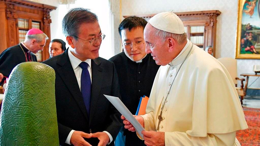 La oficina presidencial surcoreana dijo en un comunicado que el presidente Moon Jae-in “transmitió el deseo del líder norcoreano Kim Jong Un de una visita papal a Corea del Norte”. Pyongyang enviará una invitación formal más adelante.