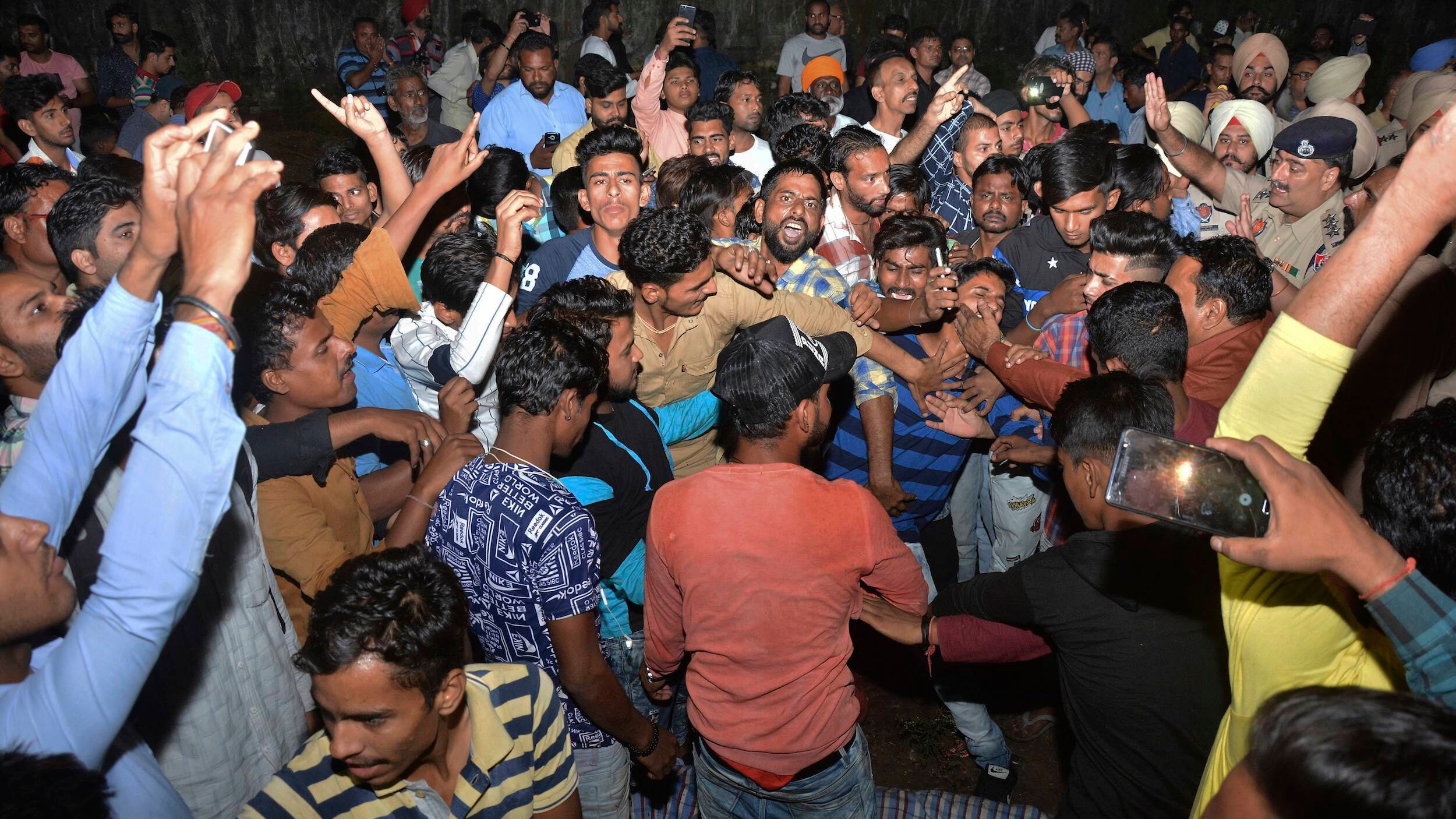 El festival hindú era el de Dussehra, en que se quema una efigie del demonio Ravana. La multitud contemplaba la ceremonia cuando llegó el tren.