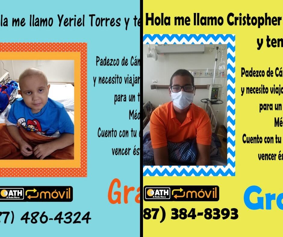 Abajo encontrará cómo ayudar, por medio de ATH Móvil, a los dos pacientes: