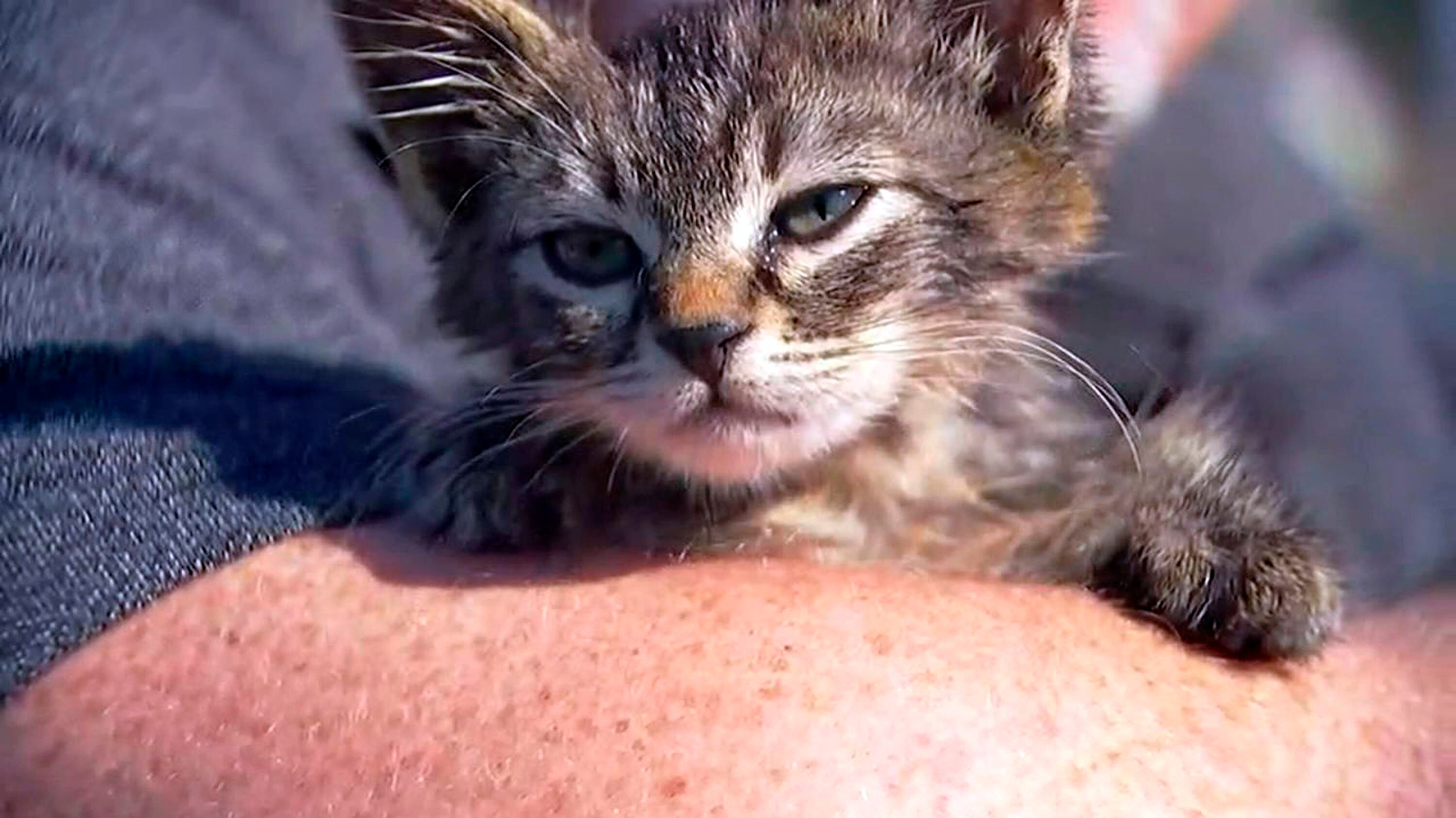 El hombre identificado como Chuck Hawley rescató al gatito, que tenía algún tipo de pegamento en las patas, cuello y cola, según un reporte de la estación KPTV.