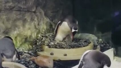 Los padres cariñosos, Magic y Sphen, llegaron a los titulares de todo el mundo este mes cuando el personal del acuario les dio un huevo para que los cuidara después de una prueba exitosa con un huevo ficticio. El pollito, que pesa solo 91 gramos (3.21 oz), nació la tarde del 19 de octubre, y el acuario anunció el nacimiento una semana más tarde el viernes. El polluelo aún por nombrar es el primer pingüino subantártico que nace en el acuario de Sydney. Magic y Sphen habían mantenido el huevo en pequeños anillos de nidificación construidos a partir de guijarros y deberes compartidos, con un pingüino patrullando el nido en busca de amenazas potenciales mientras que el otro mantenía el huevo caliente. Video: Reuters.