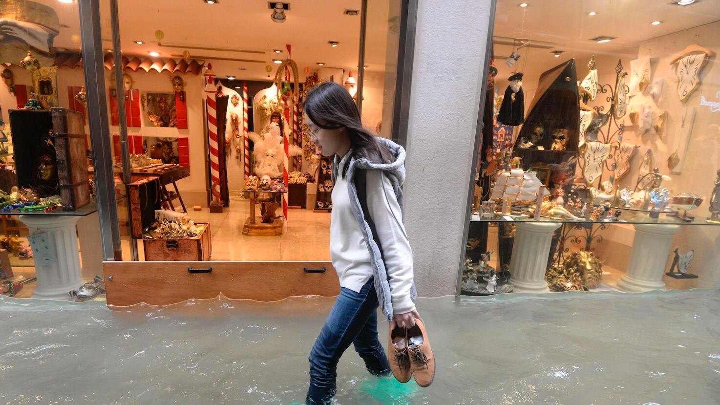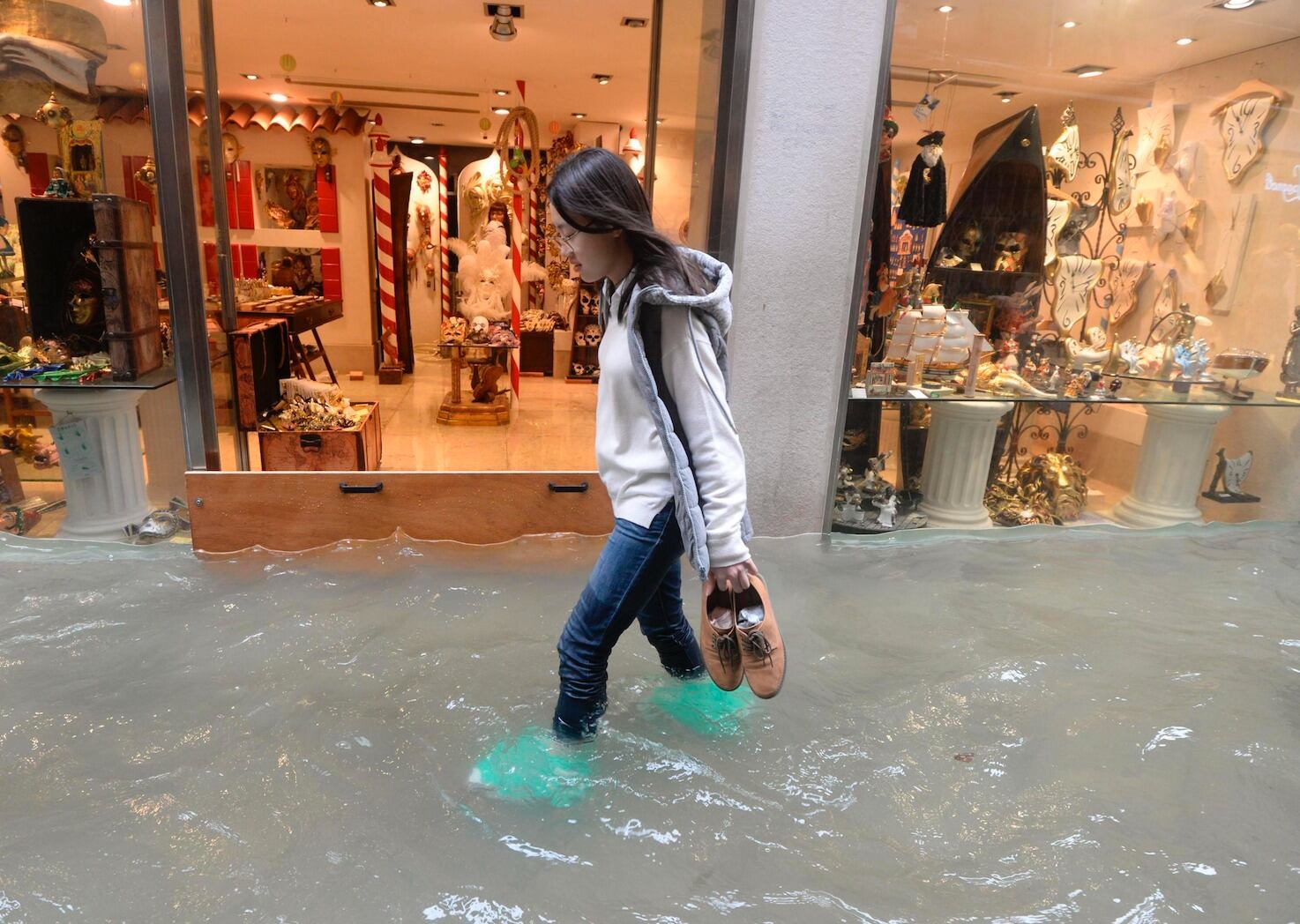 Turistas y vecinos tuvieron que calzar botas altas para recorrer las calles venecianas cuando los fuertes vientos elevaron el nivel del agua a 156 centímetros (más de 5 pies) sobre el nivel del mar antes de retroceder. El agua rebasó incluso las pasarelas elevadas que se colocan en zonas inundadas, lo que obligó a retirarlas. La autoridad de transportes canceló el sistema de autobuses acuáticos salvo a las islas más alejadas.