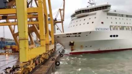 Un transbordador chocó con una grúa en el puerto de Barcelona el miércoles (31 de octubre), lo que provocó que la grúa se cayera y provocara un incendio, mostró un video de un testigo presencial. El marinero búlgaro Petar Petrov filmó el barco maniobrando en el puerto y chocó contra una enorme grúa en el muelle, que luego cayó y provocó un incendio. Petrov filmó la colisión desde un barco amarrado a unos 100 m de distancia aproximadamente a las 8 a.m. hora local (0700 GMT). Le dijo a Reuters que el clima había sido malo y sugirió que los fuertes vientos podrían haber dificultado la conducción de la nave. Los medios locales informaron que el barco era un ferry de pasajeros y que nadie resultó herido. Video: Reuters.