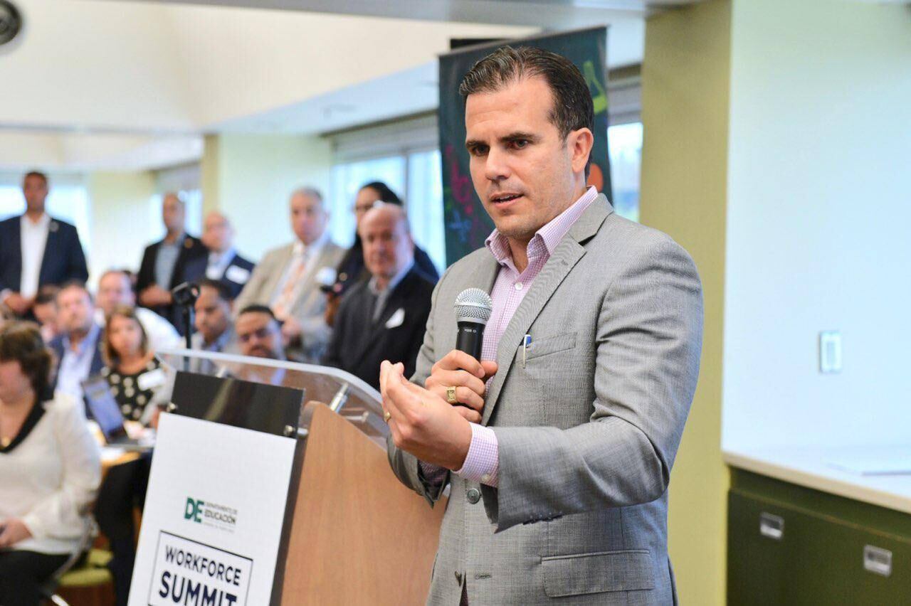 El gobernador Ricardo Rosselló Nevares participó hoy del evento Construyendo un camino hacia el empleo para estudiantes de nivel secundario del Departamento de Educación, dirigido a propiciar conversaciones entre el estudiantado y patronos de diversas industrias.