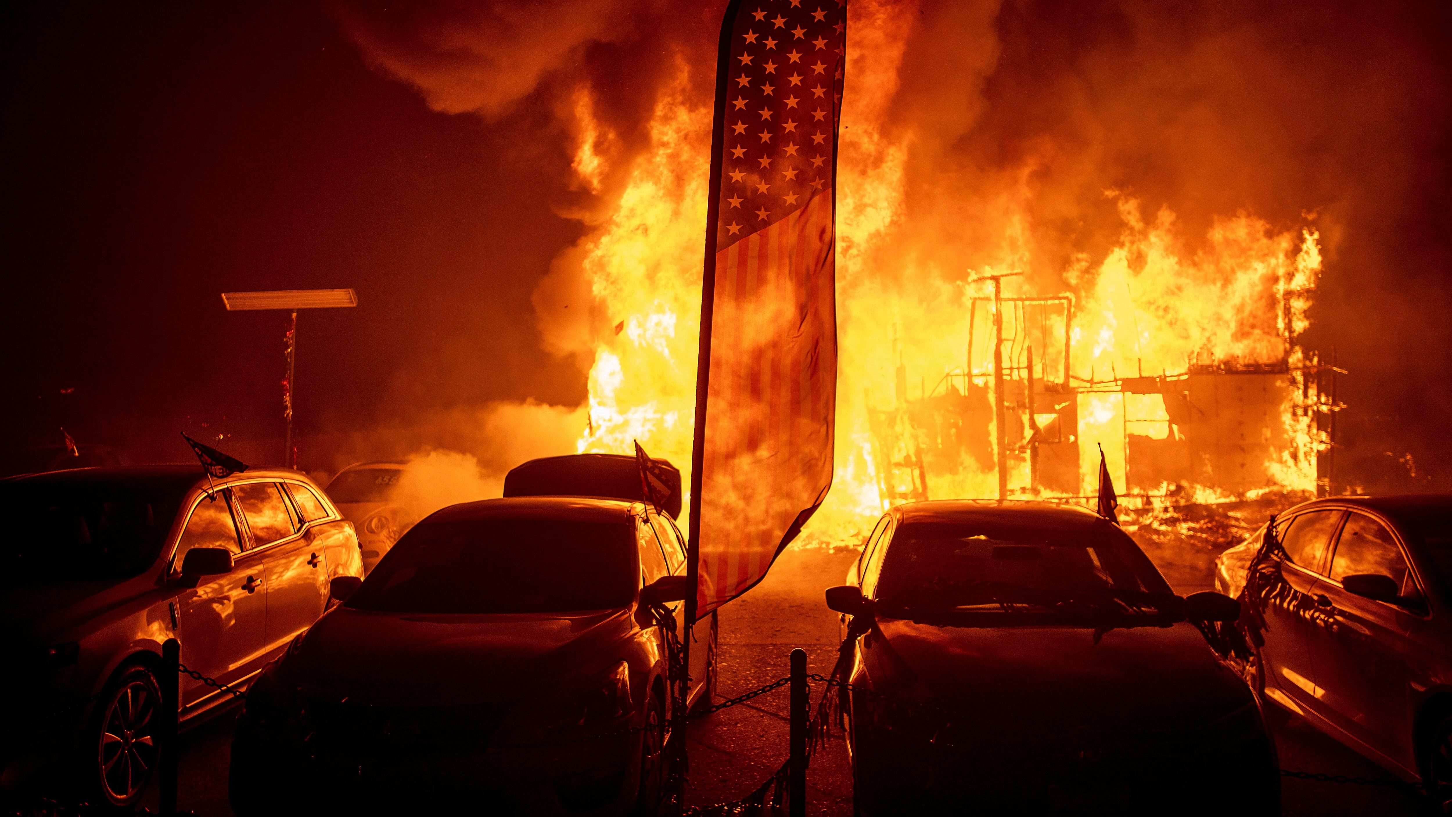 La mayoría de los edificios están en ruinas, vecindarios enteros quedaron arrasados y su distrito de negocios está destrozado. En un solo día, esta ciudad de 27.000 habitantes y fundada en el siglo XIX a los pies de la Sierra Nevada quedó en gran parte reducida a cenizas por un incendio que avanzaba tan rápido que impidió la intervención de los bomberos.