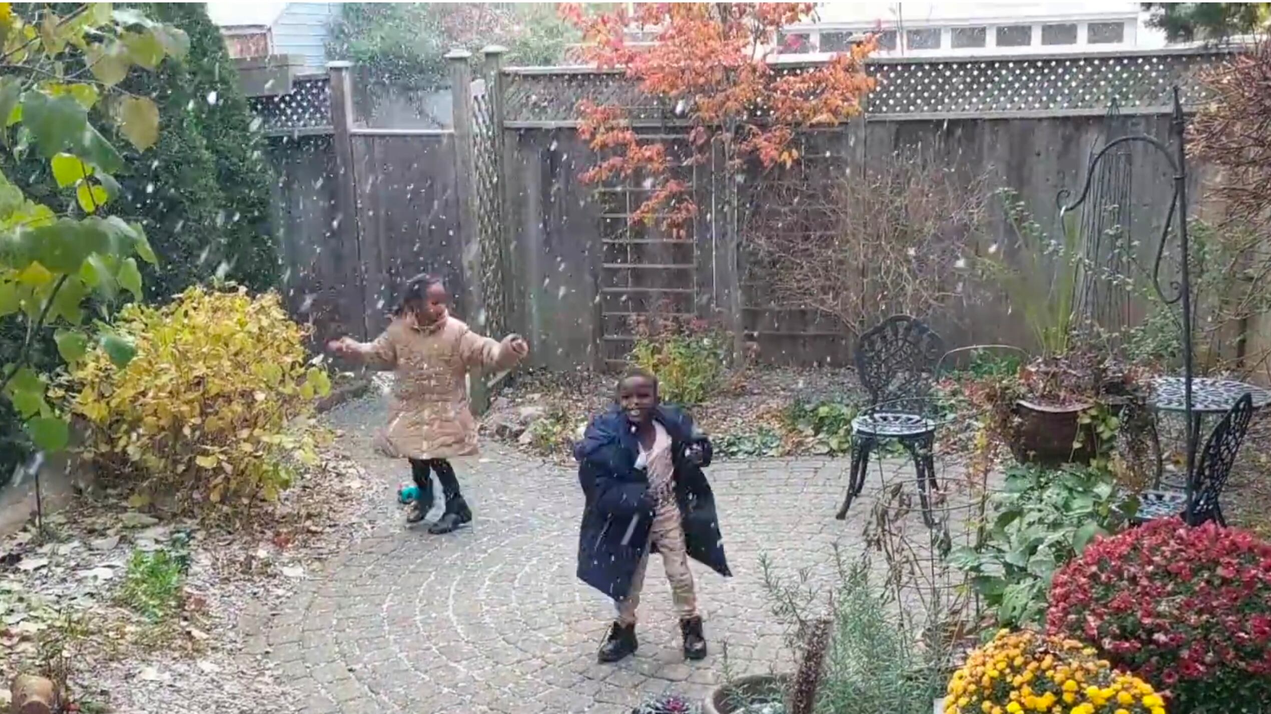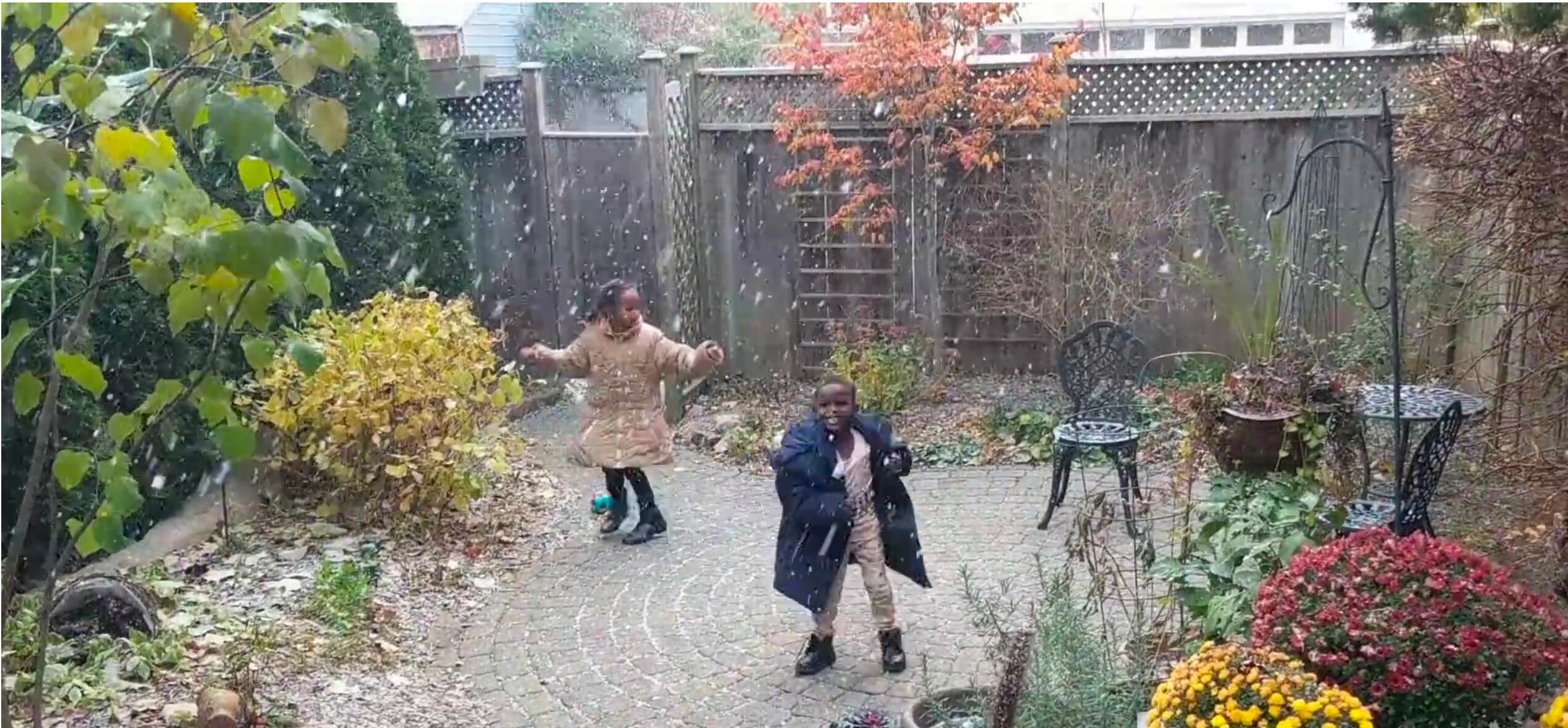 En el video se ve a Zebiba, de 7 años, y Khedir, de 5, bailando bajo su primera nevada, después de huir de la guerra que les tocó vivir.