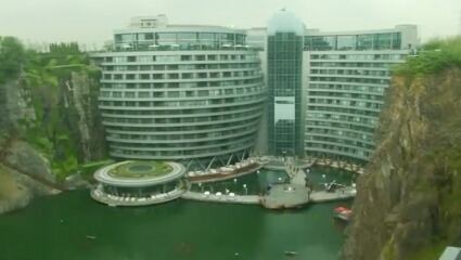 Un hotel excavado en una antigua cantera de roca abrió sus puertas a los medios de comunicación en Shanghái el jueves, y su propietario ofreció tranquilidad sobre la seguridad del edificio a pesar de los posibles temores de inestabilidad geológica o inundaciones. Video: Reuters.