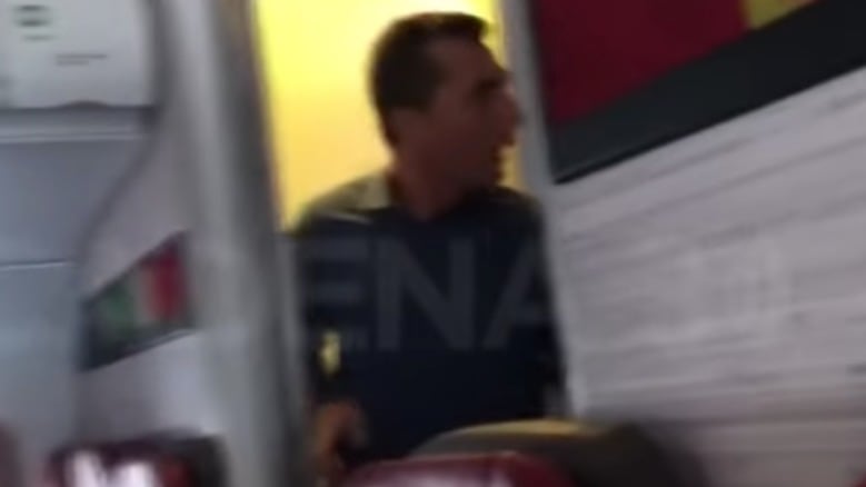 Tras empujarlo con vehemencia, comenzó a gritarle con fuerza delante de todos los pasajeros, mientras los otros tripulantes intentaban en vano calmarlo.