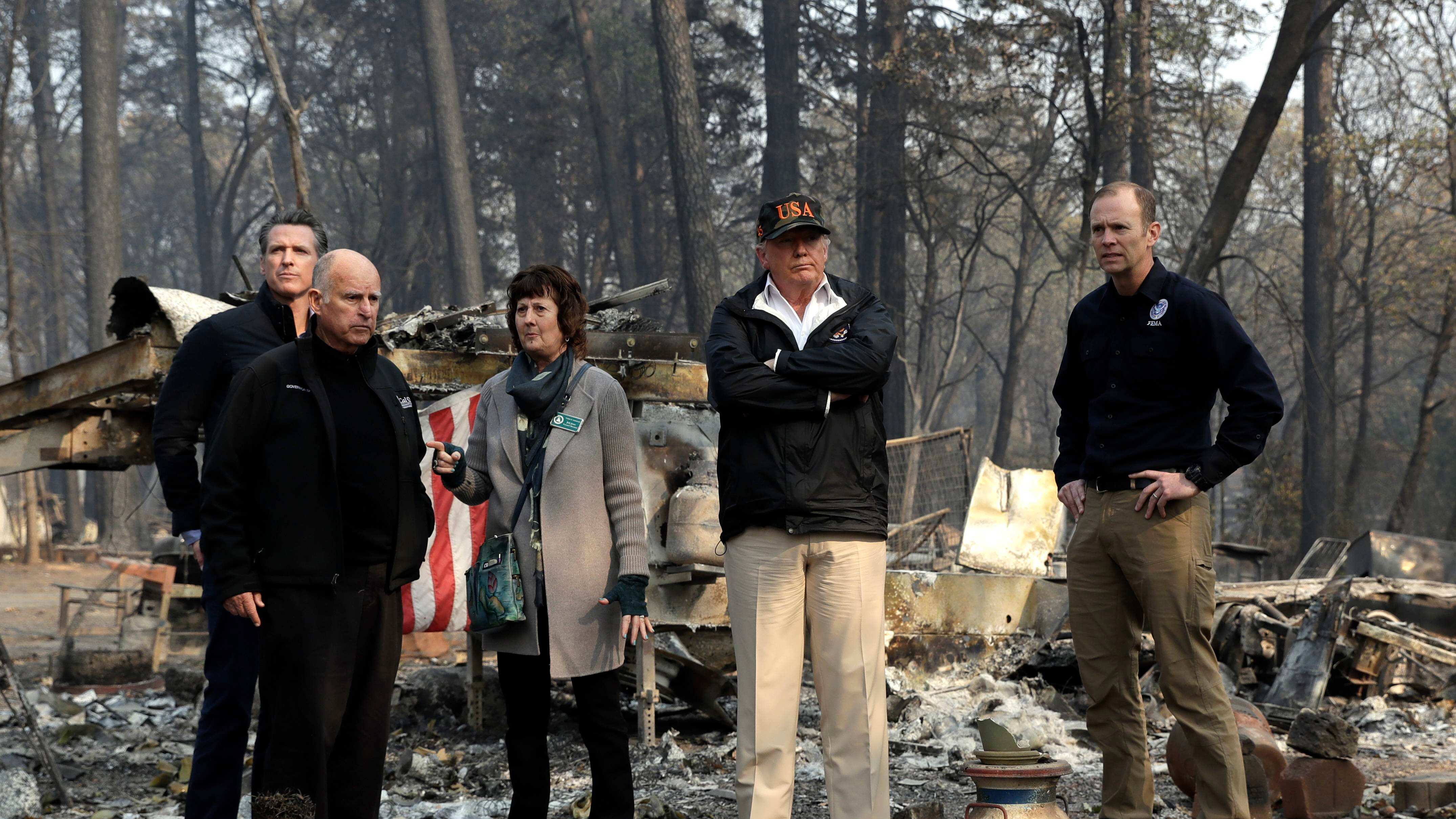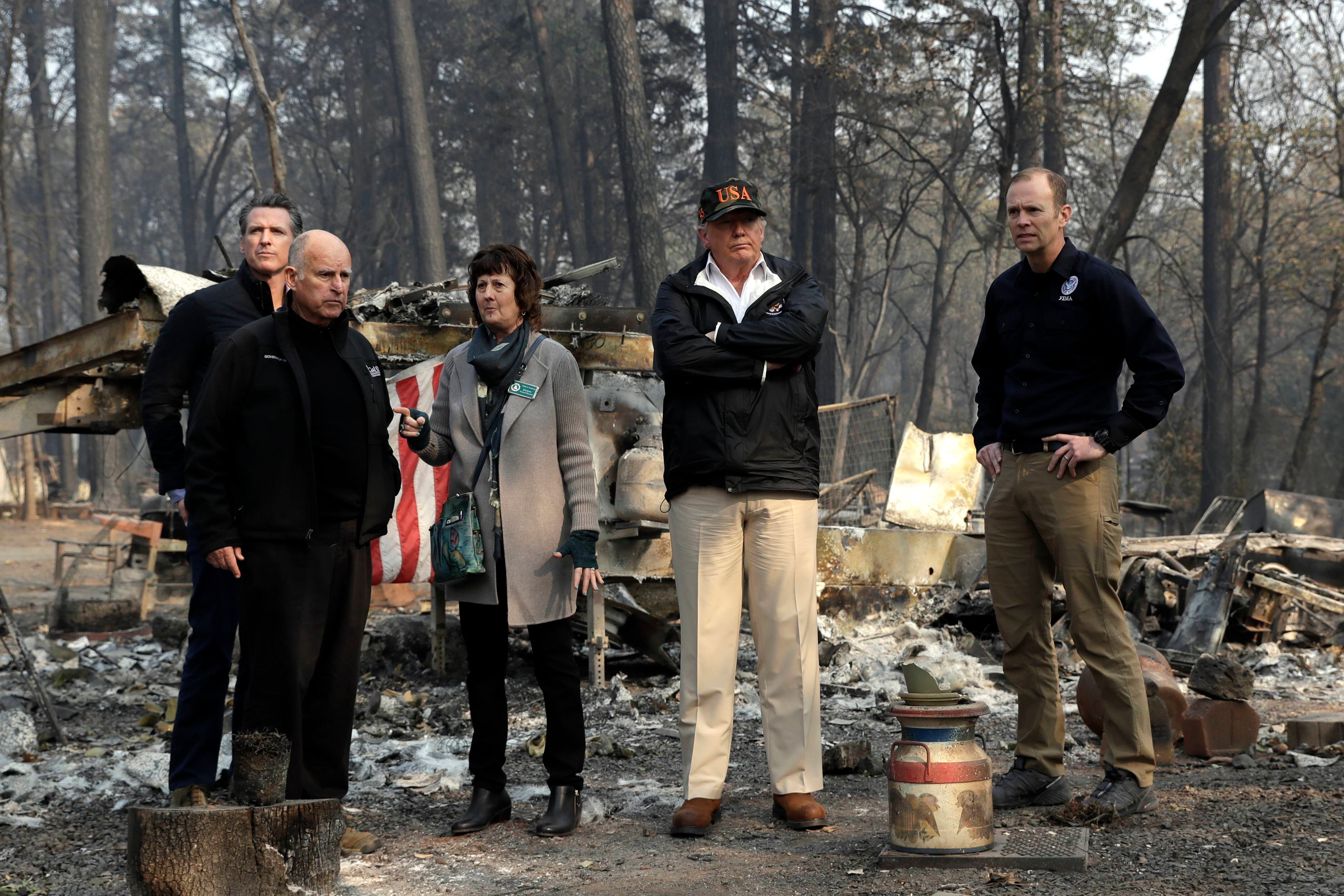 El gobernador de California Jerry Brown y el gobernador electo Gavin Newsom acompañaron a Trump en la inspección del pueblo de Paradise, de 27.000 habitantes, y visitaron un centro de comando de bomberos. Brown y Newson habían aplaudido la visita del presidente, diciendo que era hora de “salir juntos adelante por el pueblo de California”.