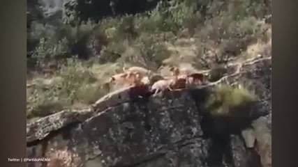 En las imágenes se puede observar a los animales tratando de aferrarse al suelo para no caer pero algunos no lo consiguen. El hecho ocurrió en la provincia española de Cáceres donde la jauría acorraló a un venado al borde de un barranco. Pero al rodearlo, quedaron ellos a centímetros del vacío y por el sonido de los disparos por parte del cazador, los animales comenzaron a caer. La Real Federación Española de Caza (RFEC) y las Federaciones Autonómicas de Caza (FFAA) dijeron estar “consternadas” por el “accidente” del video. Y arremetieron contra los usuarios que se quejaron en redes sociales sobre la caza, argumentando que fue un hecho “totalmente fortuito y aislado”.