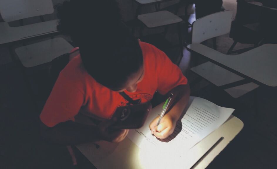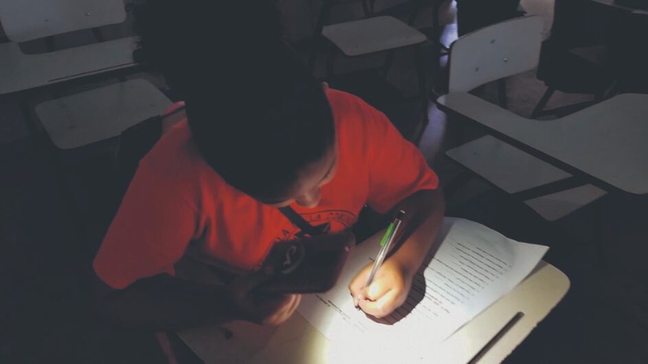 Los estudiantes de la escuela Luisa Valderrama, del barrio Higuillar en Dorado, han tenido que recurrir a alumbrarse con una linterna en algunos de sus salones para poder estudiar.