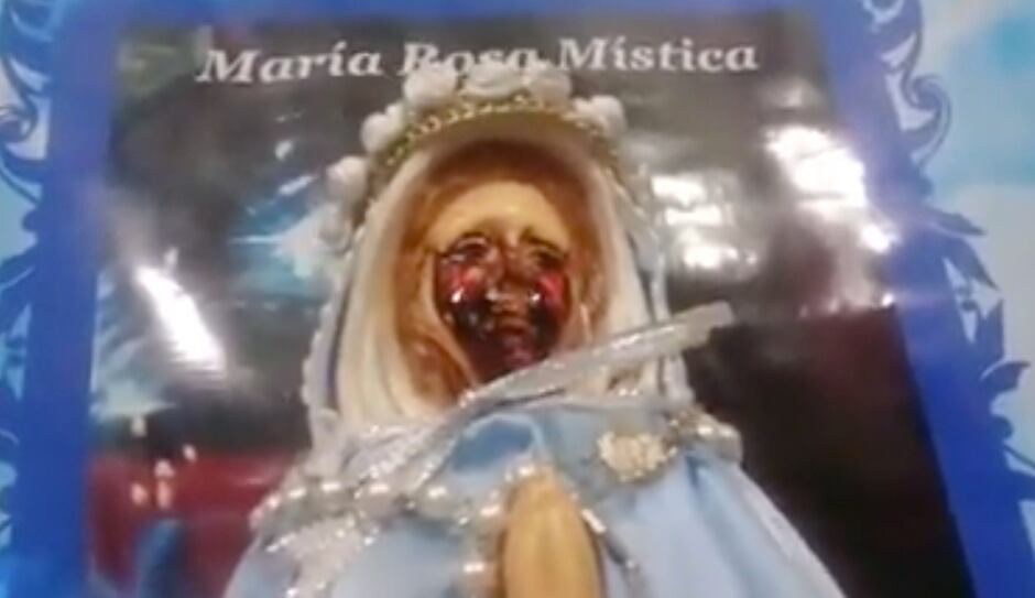 Más de siete mil reproducciones suma en Facebook compartido por la página Código Abierto METÁN donde aseguran se observa claramente como una estatua de yeso de la Virgen de la Rosa Mística llora sangre.