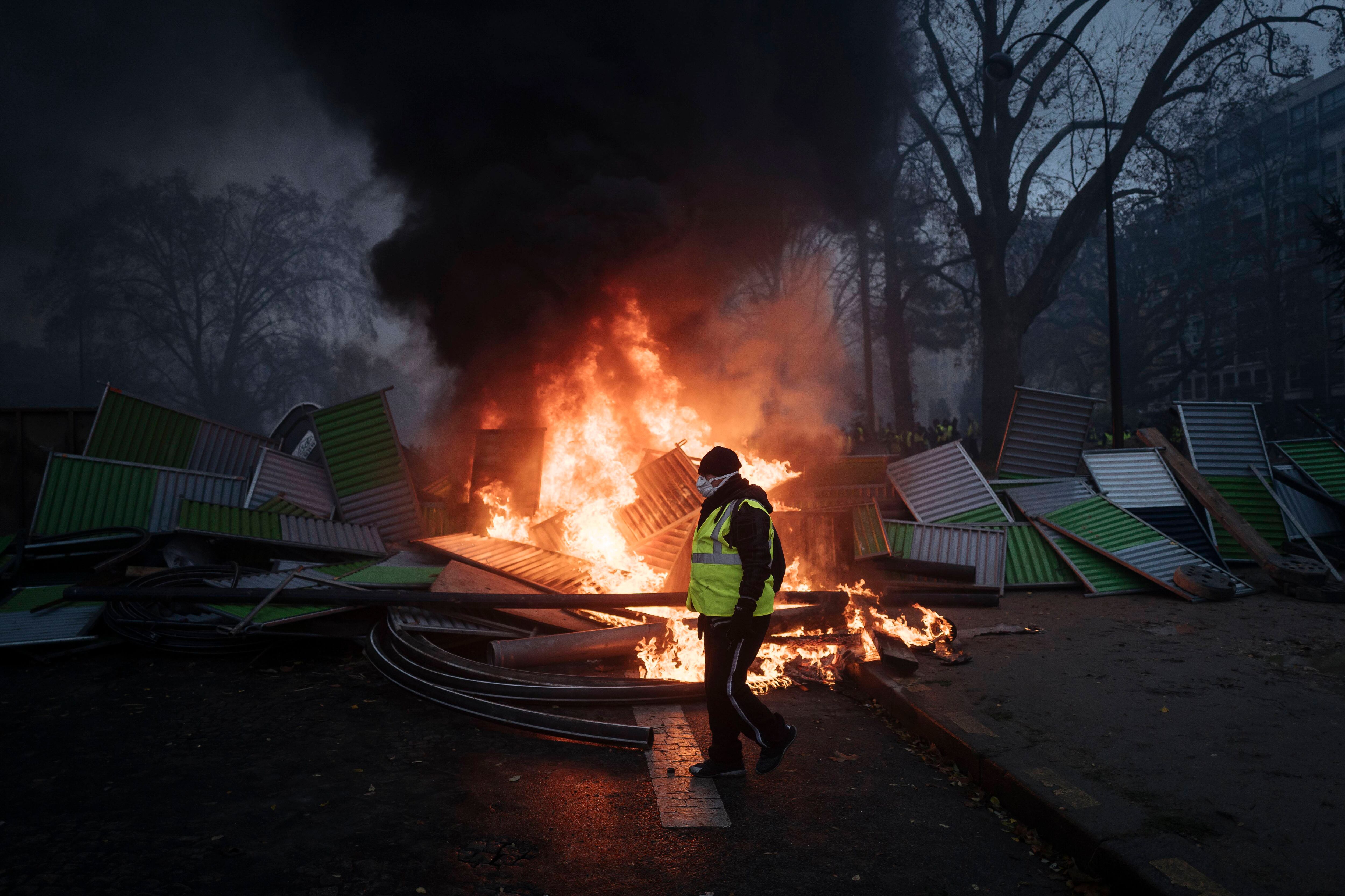 Una protesta en contra del aumento de los impuestos y el alto costo de la vida degeneró en disturbios en la capital francesa, donde activistas con chalecos amarillos incendiaron vehículos, rompieron ventanas, saquearon comercios y mancharon el Arco de Triunfo con grafiti. La Policía respondió con cañones de agua y gases lacrimógenos, clausurando calles y estaciones del metro.