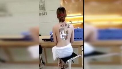 El impactante video, capturado en la ciudad de Nanning en el sur de la Región Autónoma de Zhuang de Guangxi el 30 de noviembre, muestra varias modelos femeninas semidesnudas con máscaras para “mostrar” los planos de los pisos pintados en sus espaldas.Los cofres de las modelos están cubiertos por patrones de mariposas.Según los informes, el centro de bienes raíces ha sido cerrado y las autoridades están investigando el caso. Video: AP.