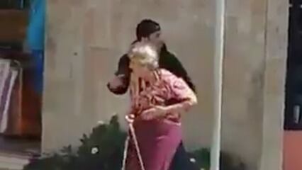 La anciana tropezó y cayó al piso y fue en ese momento en que uno de los oficiales tiró a matar contra el ladrón.