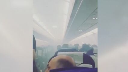 Un video capturado por pasajeros a bordo muestra el humo que envuelve la cabina, la cabina y el baño de un vuelo de IndiGo. El vuelo despegó de Jaipur en el norte de la India y se dirigió a Calcuta en la parte oriental del país. El humo comenzó a llenar la cabina cuando el vuelo estaba a unas 45 millas de su destino. El video muestra humo espeso en la cabina del 6E-237, un nuevo avión que se aproxima a su destino. Según el ministerio de fuentes de aviación, el A-320 Airbus estaba aproximadamente a 45 millas de Kolkata cuando los pilotos a bordo del avión transmitieron una llamada de “Mayday” a la radio, lo que indica al Control de tráfico aéreo que el avión y los pasajeros a bordo estaban en peligro. Según las autoridades, el “humo (se detectó) en la cabina, la cabina y el baño”. El avión realizó un aterrizaje de emergencia, después de lo cual los pasajeros en la parte trasera del avión fueron rescatados usando un tobogán. El video también muestra a las personas que se levantan en el tobogán iluminado y el personal de seguridad de la línea aérea los lleva a un lugar seguro. Video: AP.