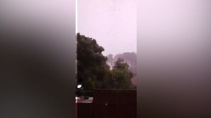 Hasta un mes de lluvia en un solo día varados en un centenar de vehículos en la autopista Hume en Wangaratta. Una serie de celdas de tormentas severas están cayendo sobre la cuenca de Sydney el jueves por la noche, trayendo consigo granizo, vientos dañinos y fuertes lluvias que podrían provocar inundaciones repentinas, advirtió la Oficina de Meteorología. Video: AP.