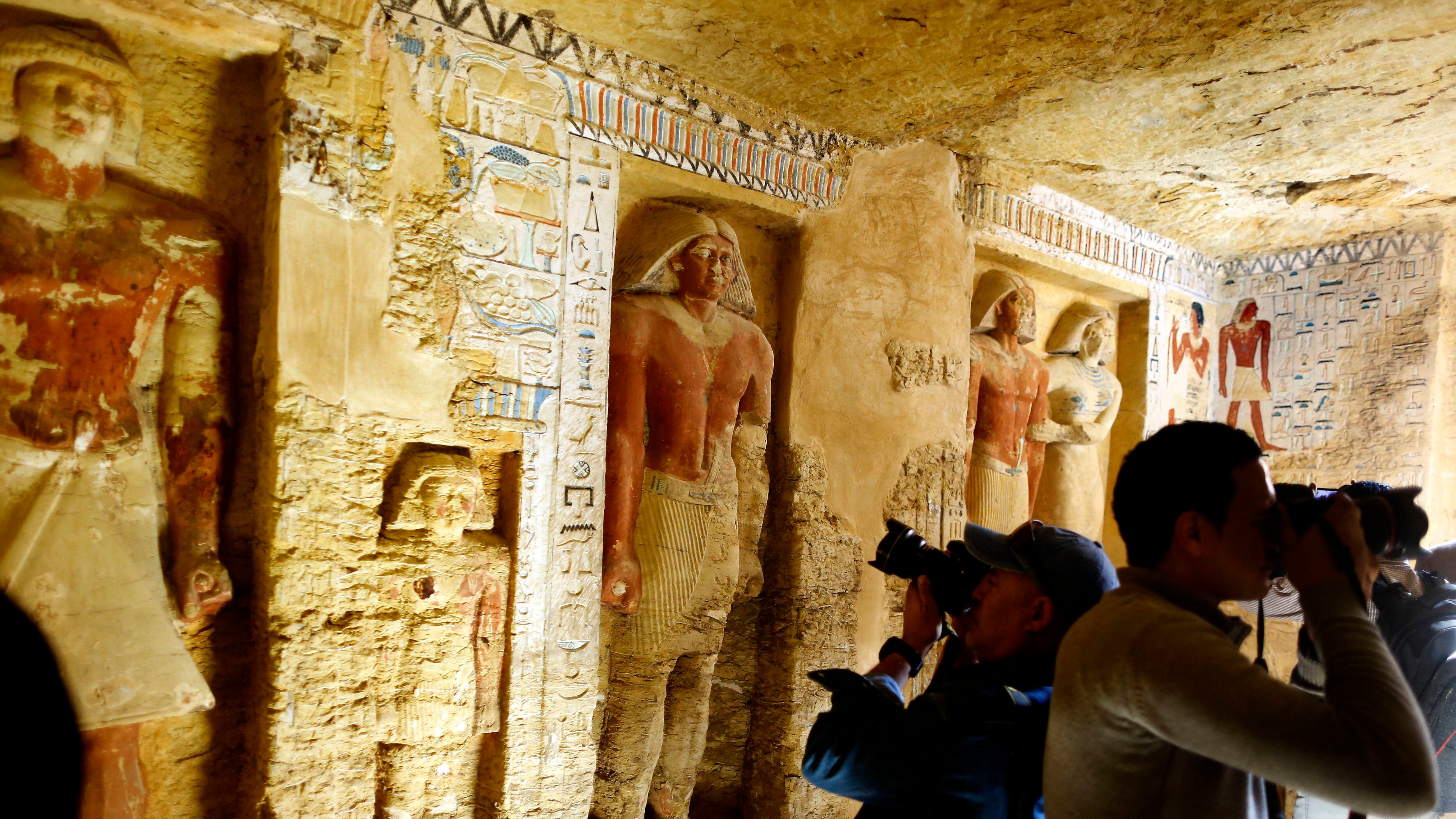 Al-Anani dijo que los gráficos en las paredes de la tumba estaban “excepcionalmente bien conservados”. Los gráficos muestran al funcionario y su familia, agregó. La tumba también contiene un total de 45 estatuas talladas en piedra.