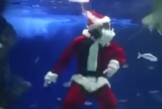 Los visitantes de un acuario de Tokio se sorprendieron cuando Santa Claus se sumergió en un acuario de la ciudad.