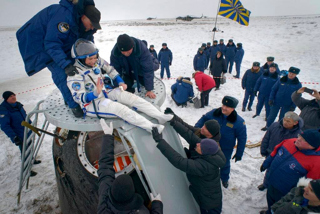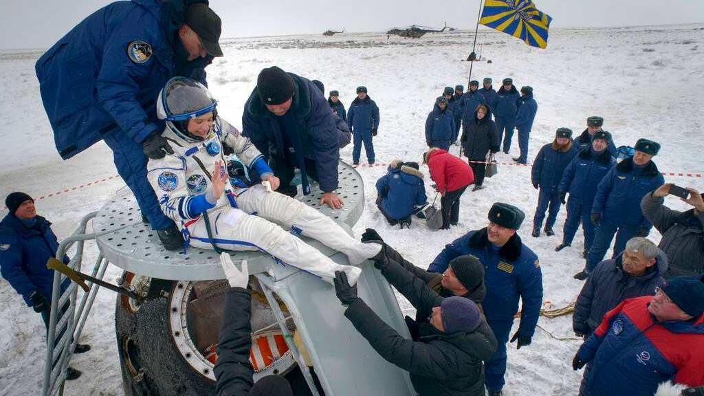 La tripulación avisó por radio que se sentían bien. Equipos rusos de rescate en helicópteros y vehículos todo terreno se apresuraron a llegar al lugar para extraer a los astronautas de la cápsula, cuyo exterior lucía carbonizado por la fricción del reingreso a la atmósfera.