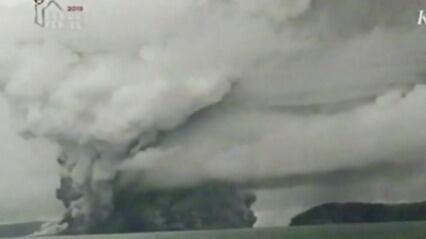 En esa zona un tsunami mató al menos a 430 personas en Sumatra y Java el pasado fin de semana. La erupción del volcán el sábado por la noche hizo que parte de la isla en el Estrecho de Sunda se desplomara en el mar, generando aparentemente olas de tsunami de más de 2 metros. Video: AP.