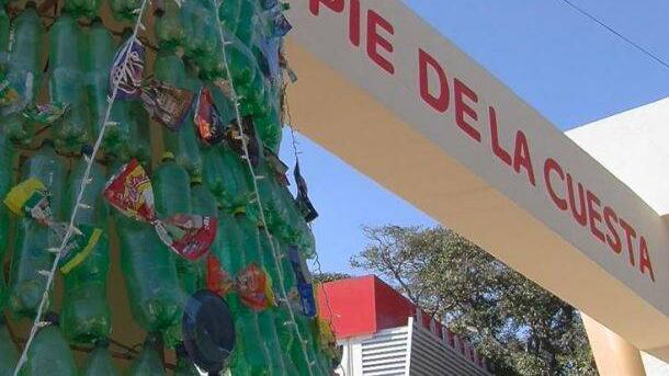 El puerto de Acapulco se ha convertido en el primer lugar de México en realizar un árbol de navidad ecológico elaborado con botellas de plástico y envolturas de distintos productos alimenticios.