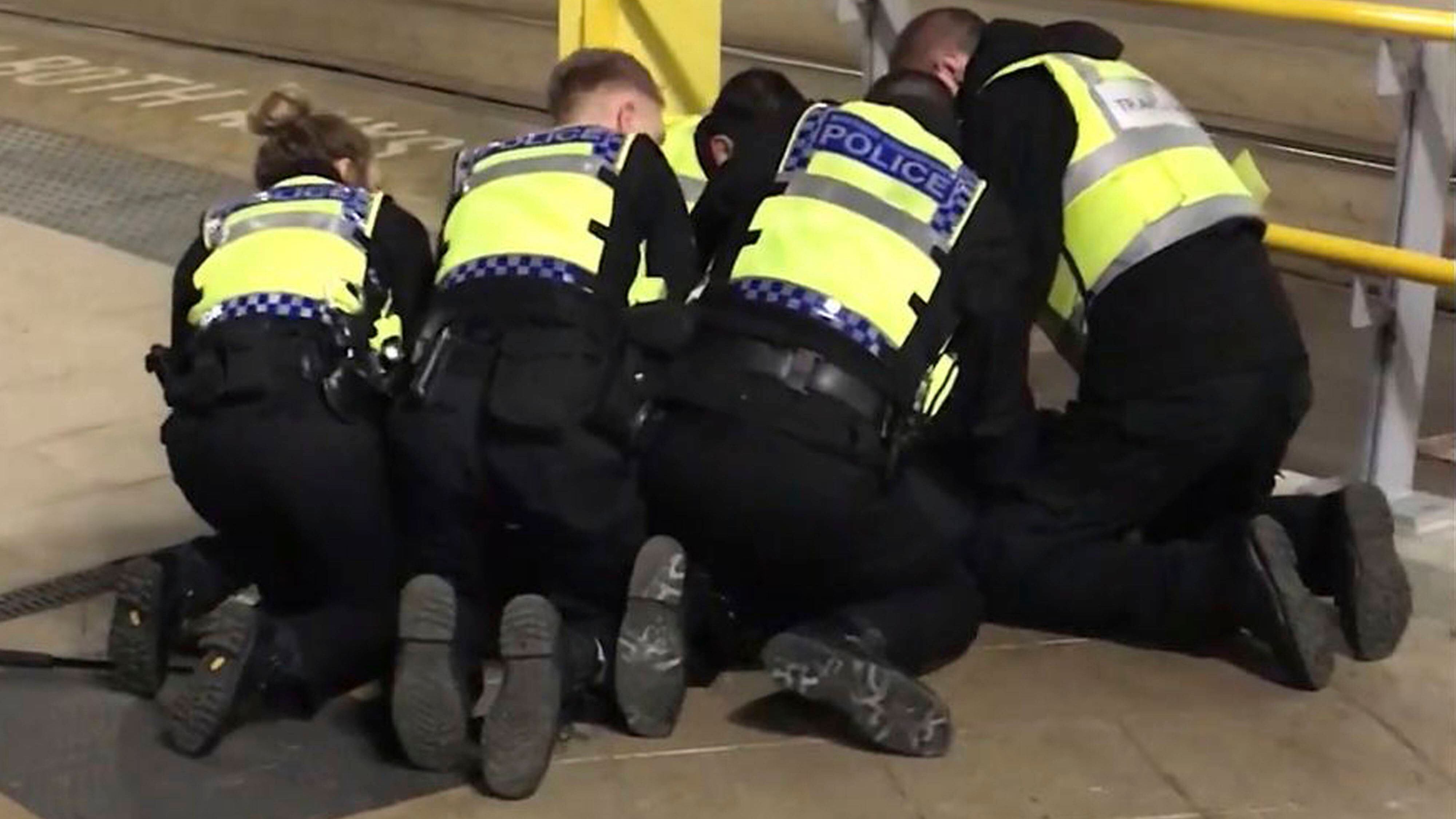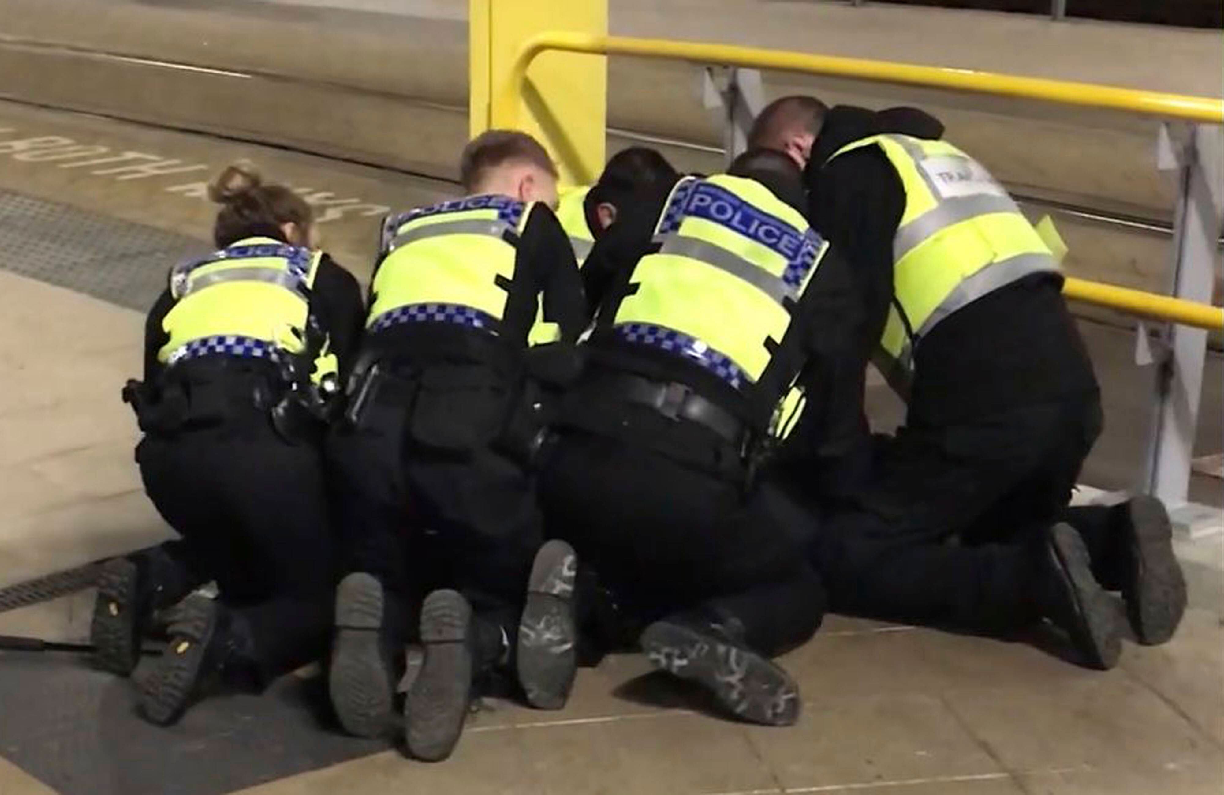 El sospechoso no ha sido identificado. Está acusado de acuchillar a tres personas, entre ellas un sargento de la policía de tráfico, en una estación de tren de Manchester el lunes en la noche mientras gritaba consignas extremistas islámicas.