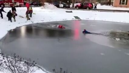 En el centro de un lago helado en Illinois hay un niño de 11 años. Alguien llama a emergencias y los rescatistas no tardan en llegar. El hielo es tan frágil que es imposible entrar a por el niño. Le lanzan un disco rescatador al que se abraza el pequeño con todas sus fuerzas. Desde la orilla, tiran de la cuerda para poner a salvo al niño que empieza a recorrer las aguas heladas. Un rescatador se zambulle para ir a su encuentro. Una vez juntos, tiran de ambos hasta sacarlos del agua. El niño se recupera de la hipotermia en el hospital. Video: Reuters.